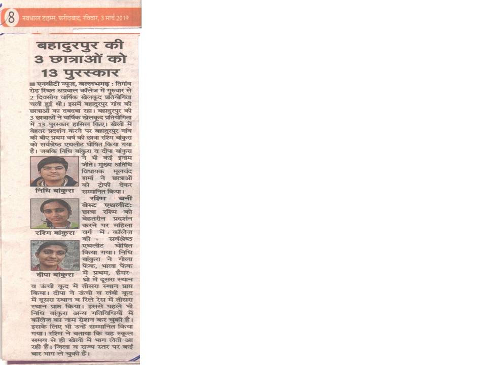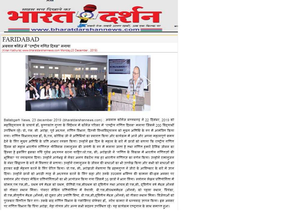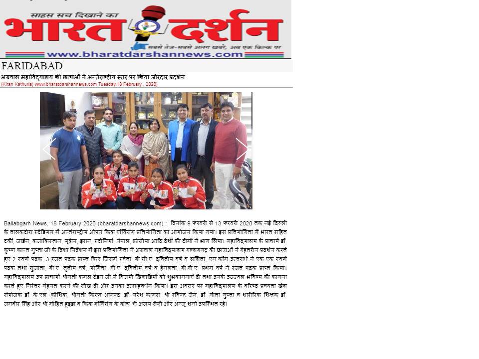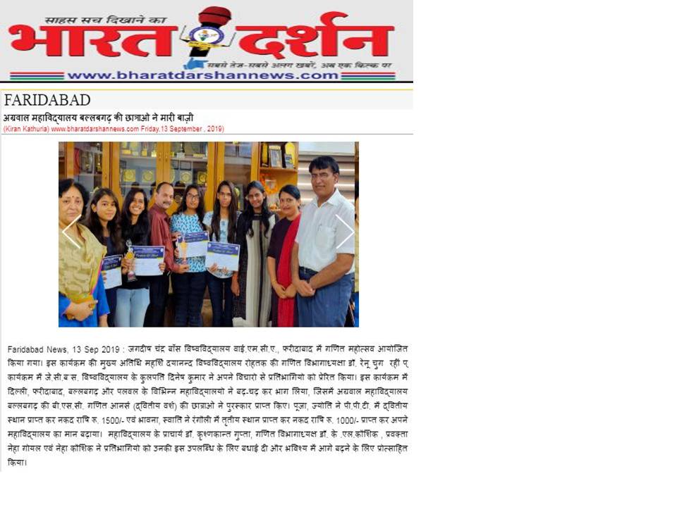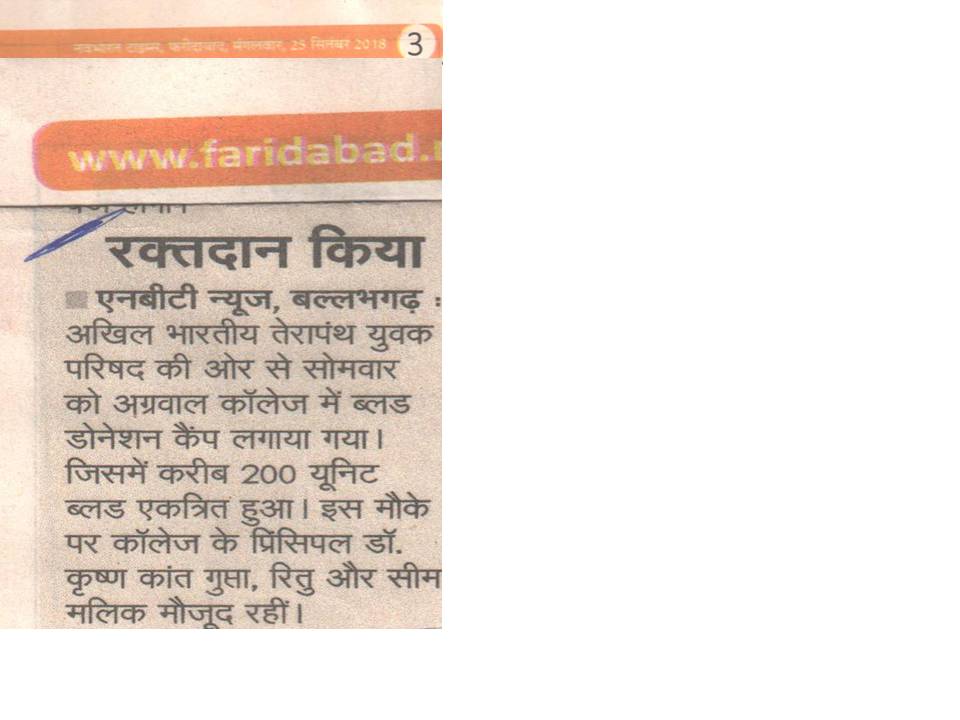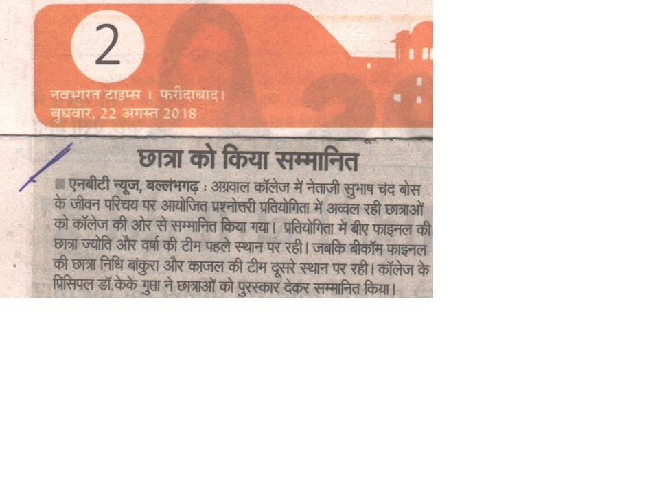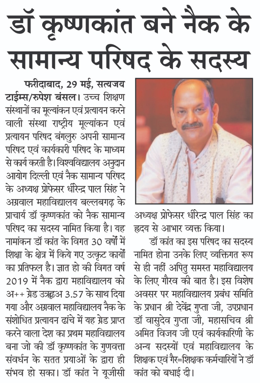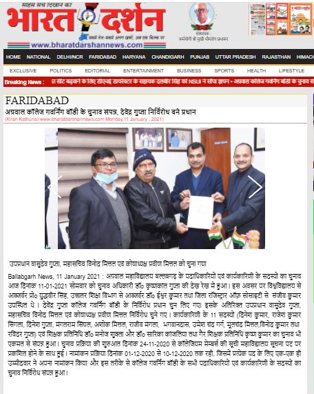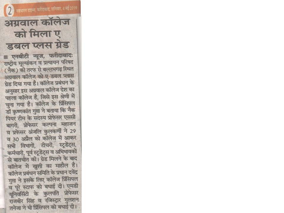 Content owned and managed by : The Principal, Aggarwal College, Ballabgarh - 121004, Distt. Faridabad (Haryana) India