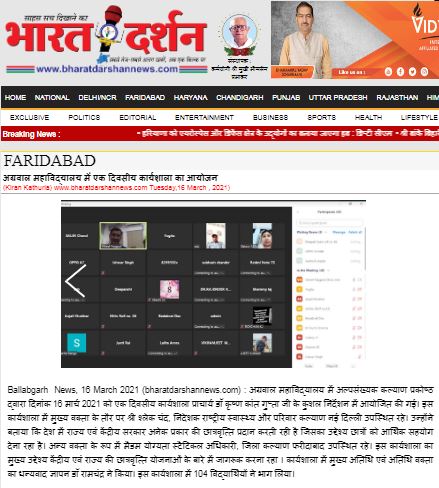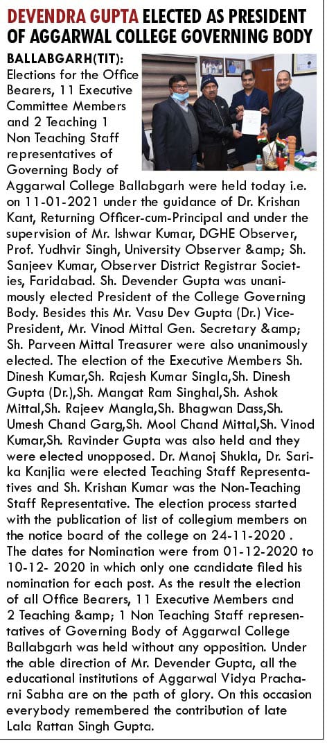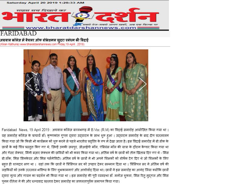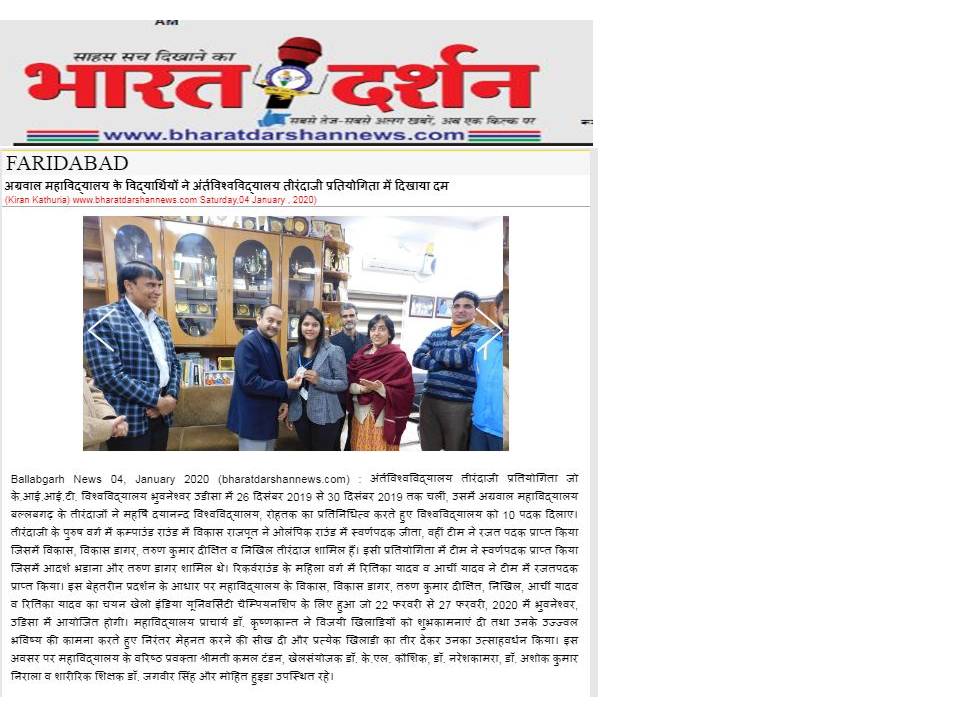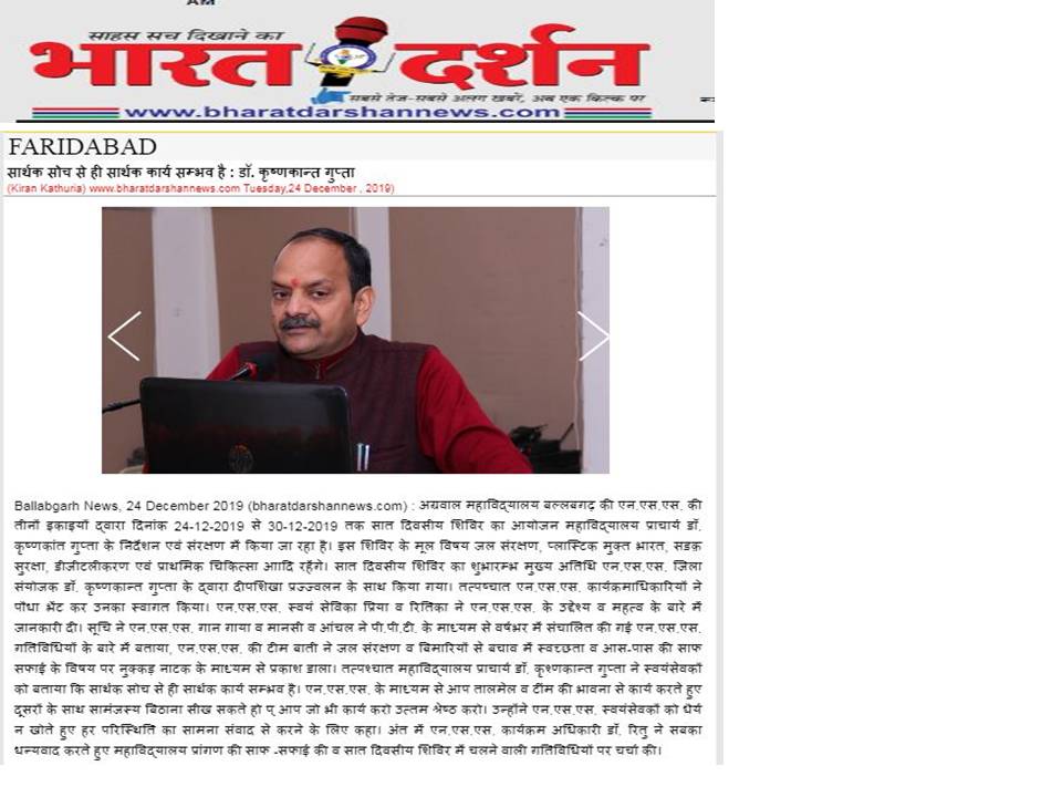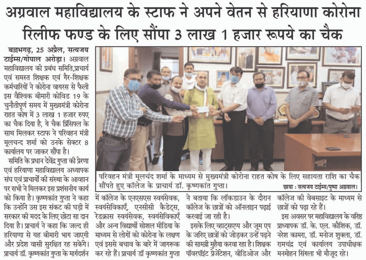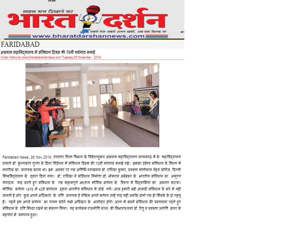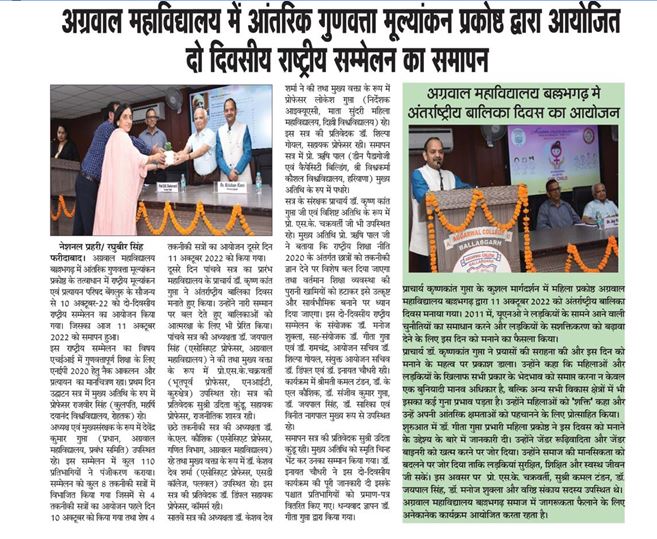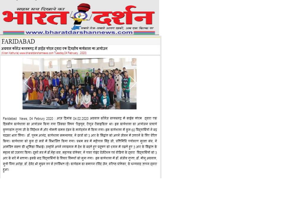 Content owned and managed by : The Principal, Aggarwal College, Ballabgarh - 121004, Distt. Faridabad (Haryana) India