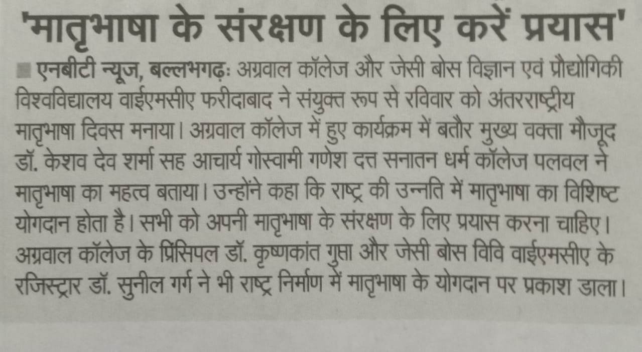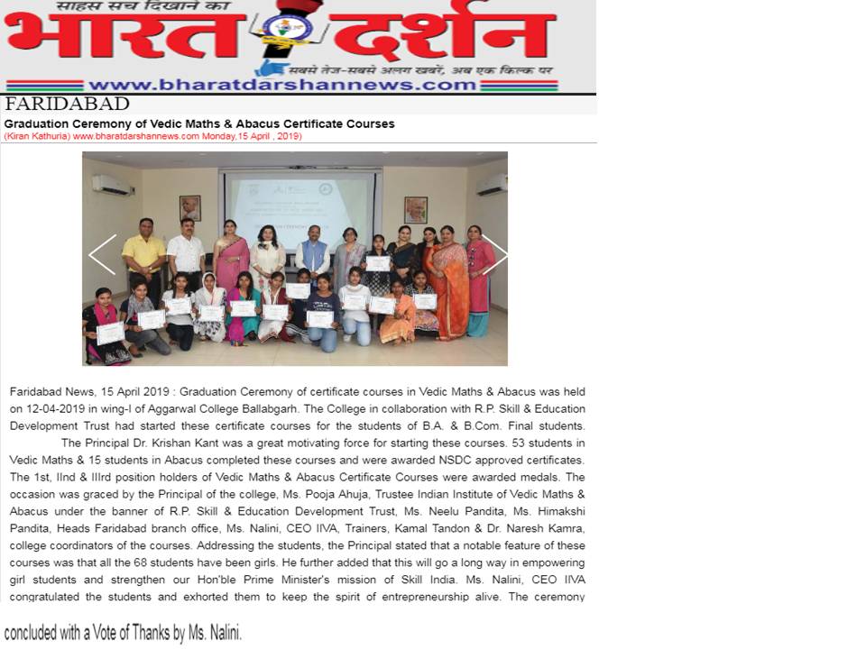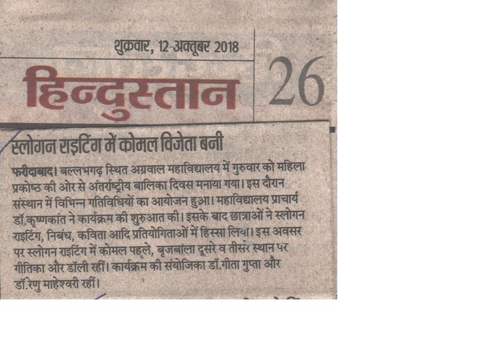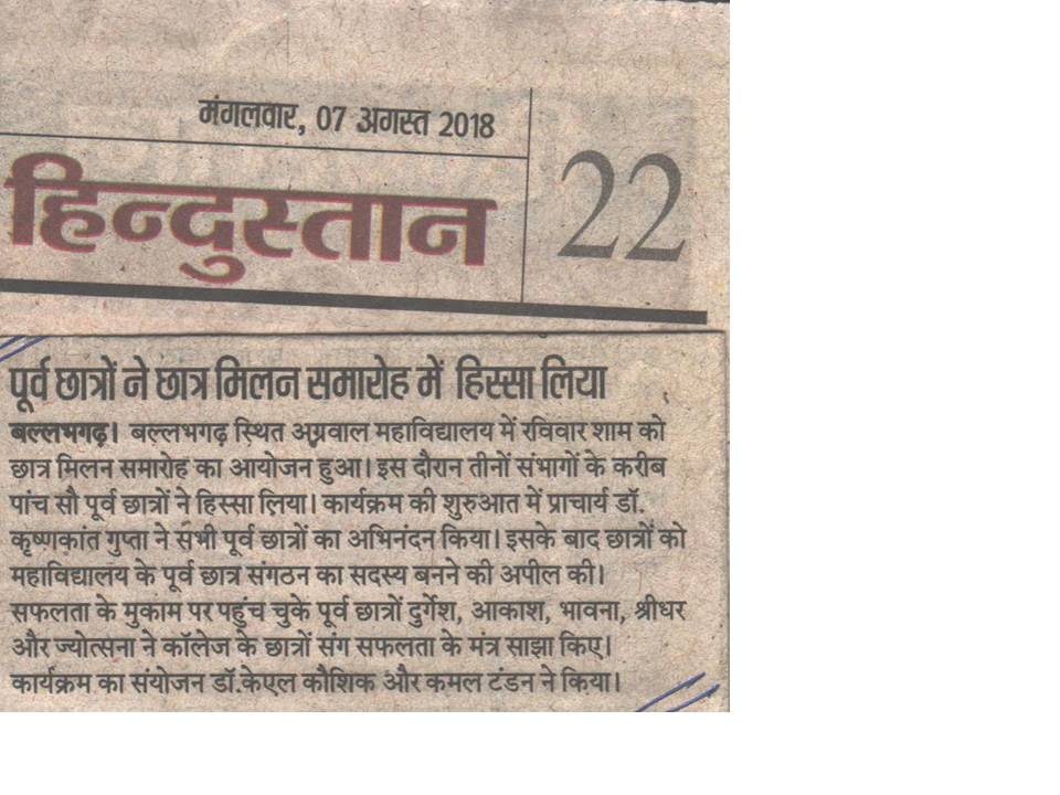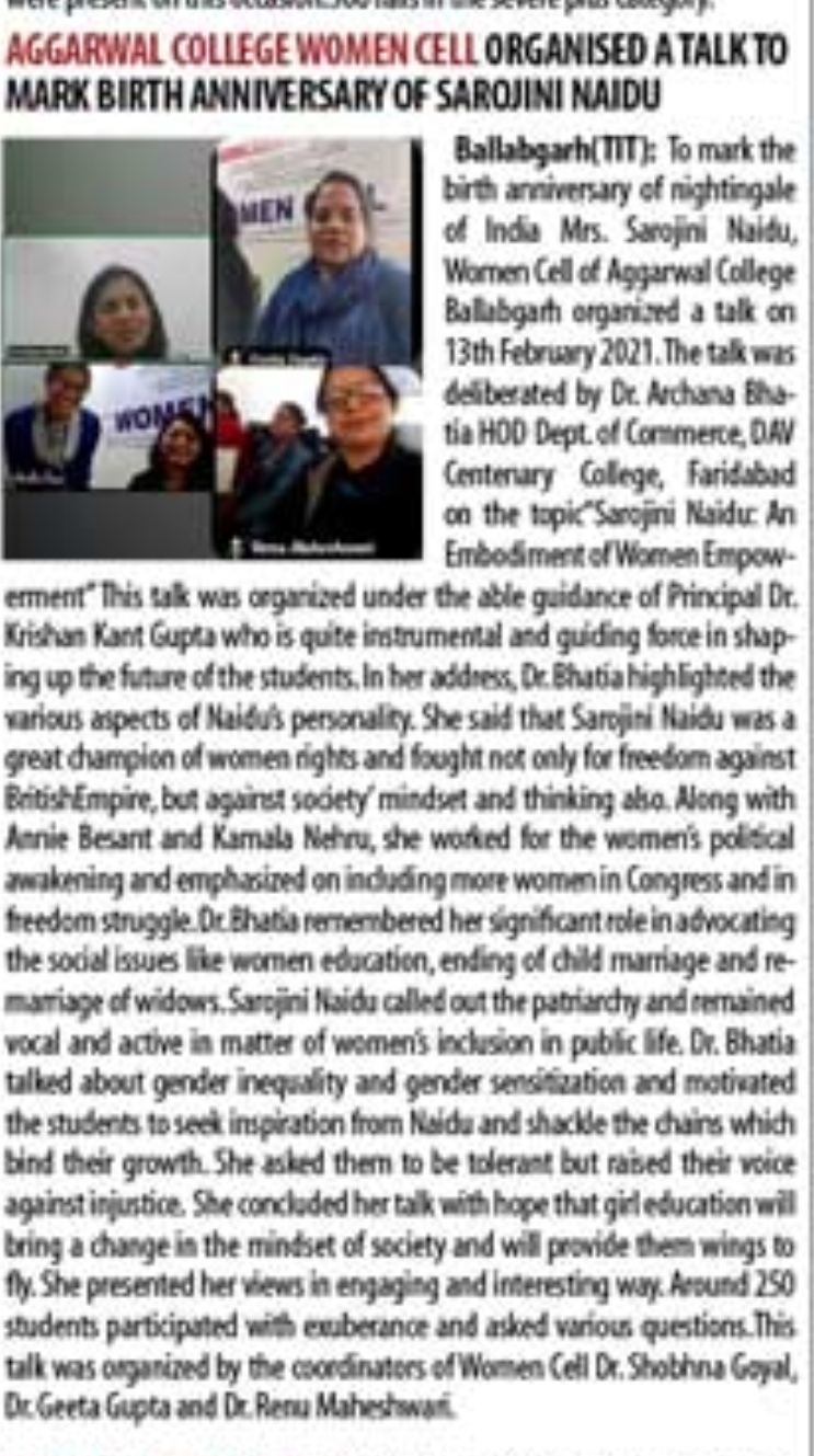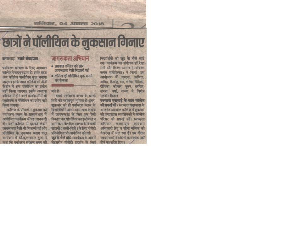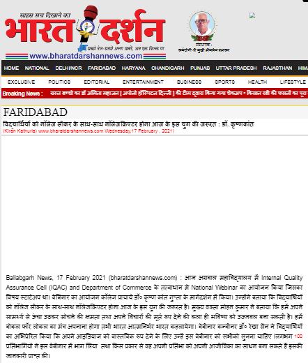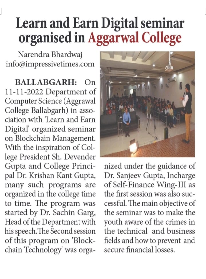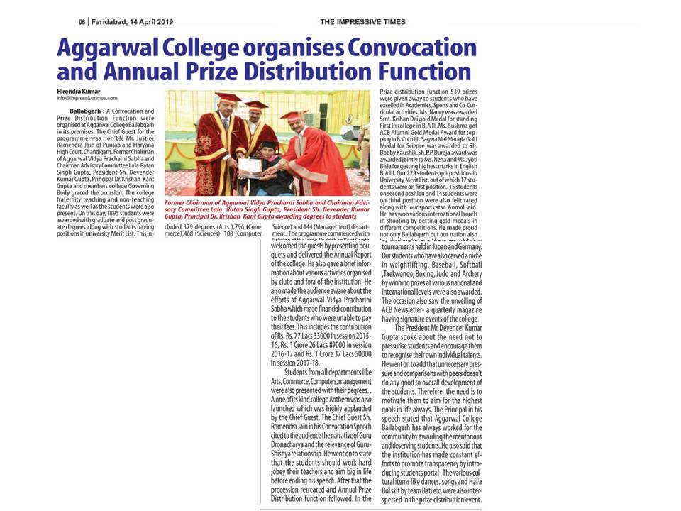 Content owned and managed by : The Principal, Aggarwal College, Ballabgarh - 121004, Distt. Faridabad (Haryana) India
