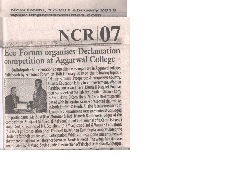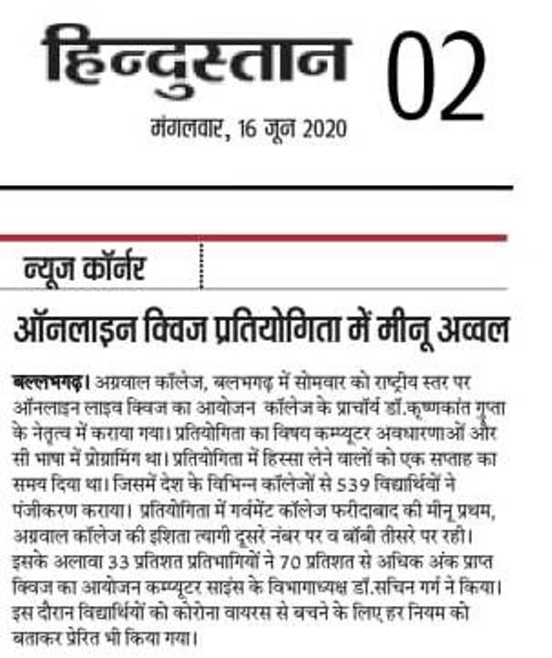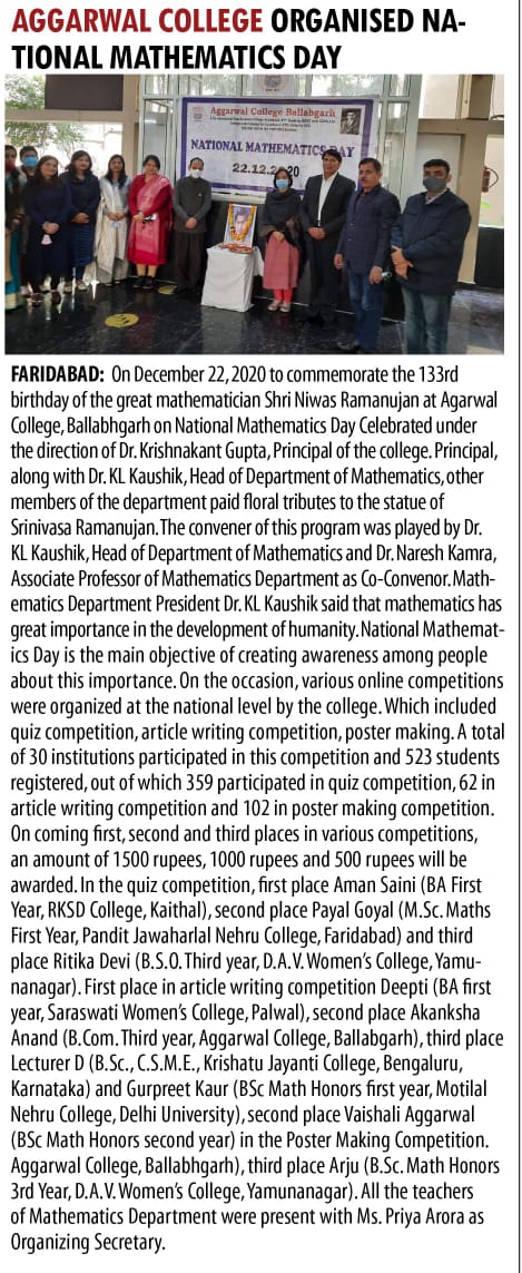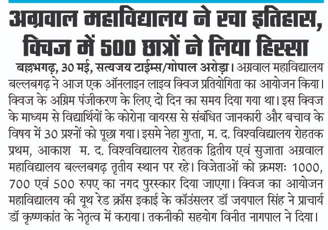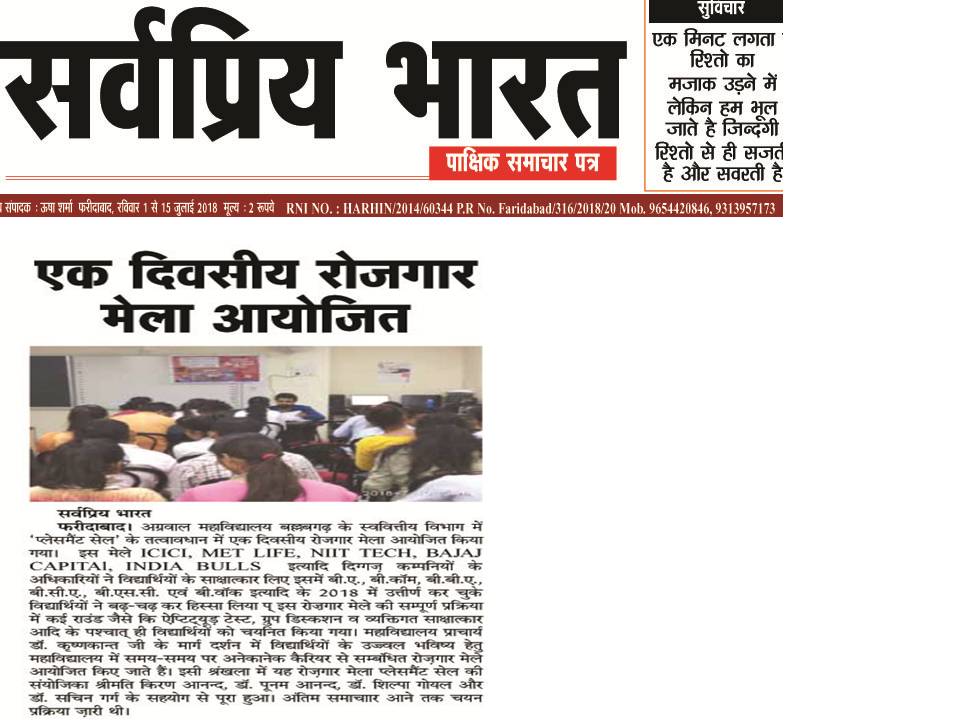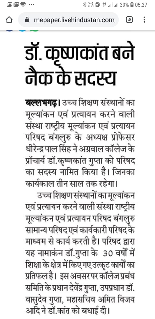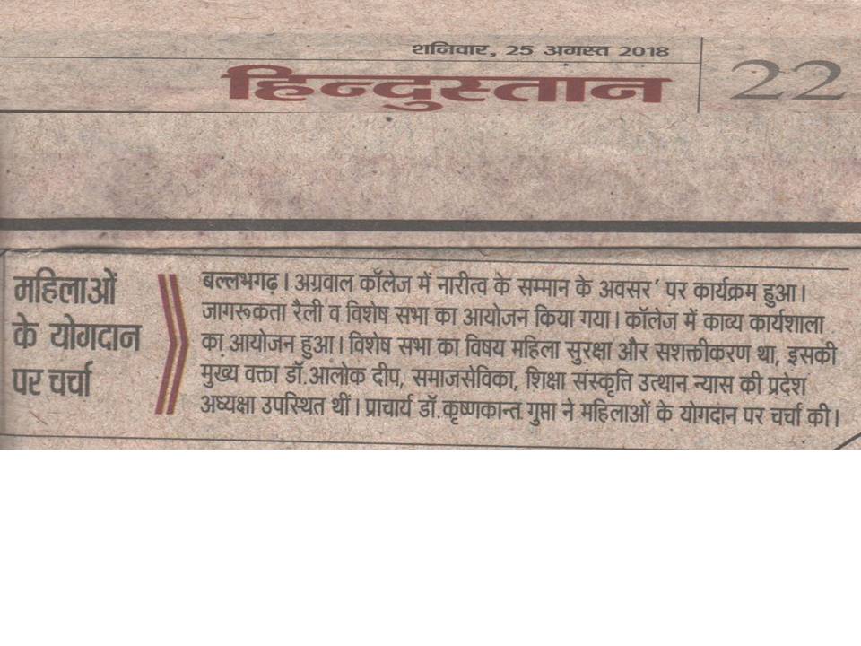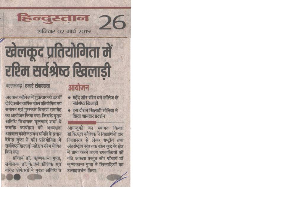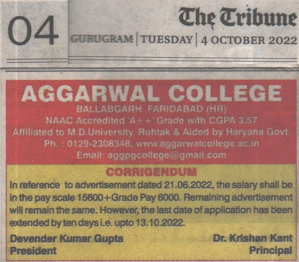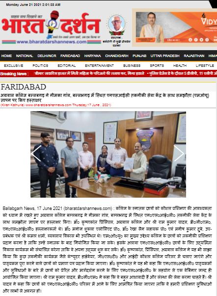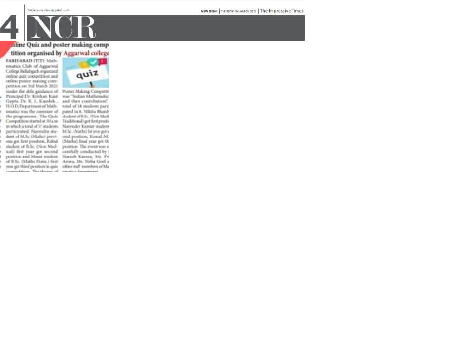 Content owned and managed by : The Principal, Aggarwal College, Ballabgarh - 121004, Distt. Faridabad (Haryana) India