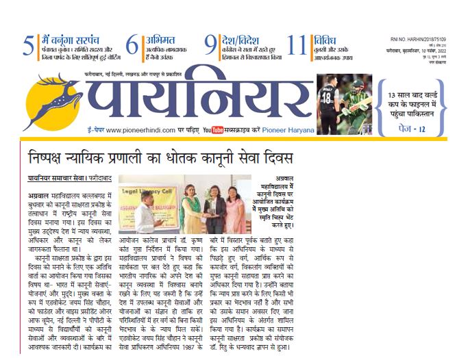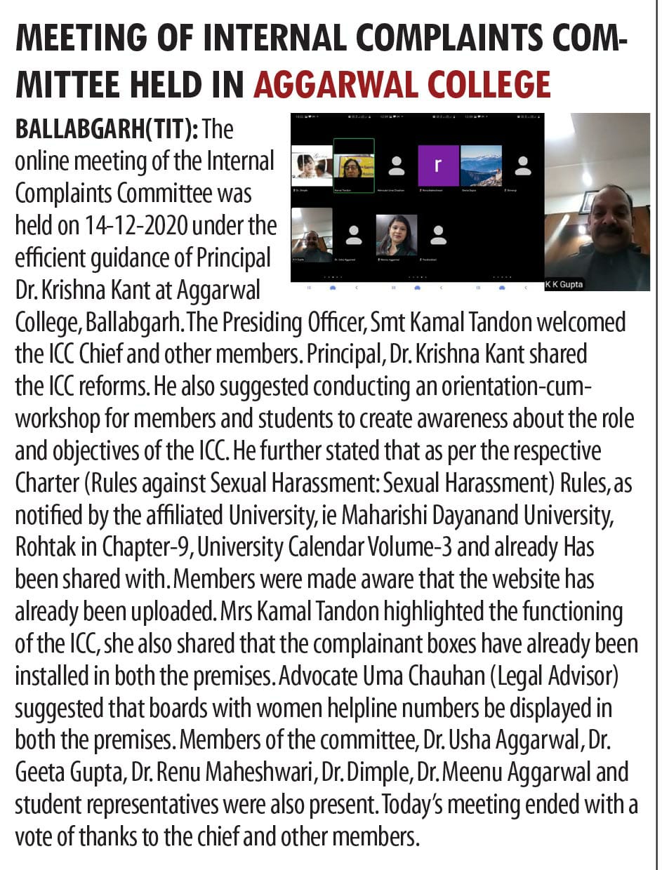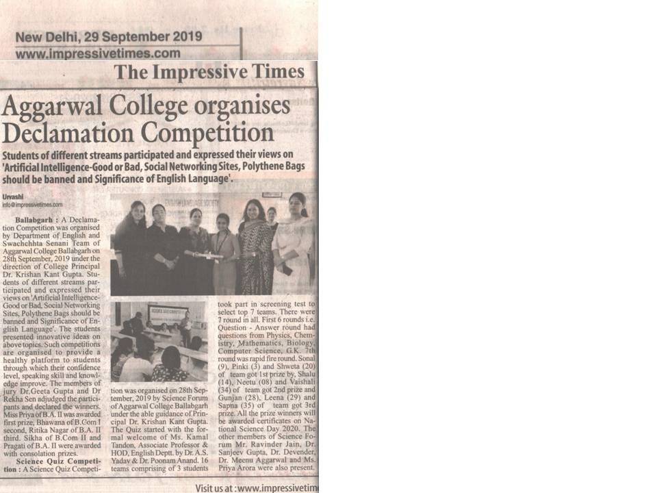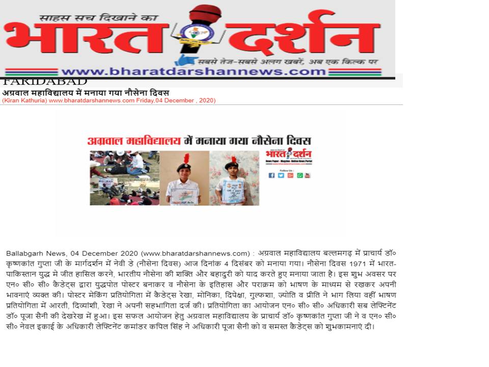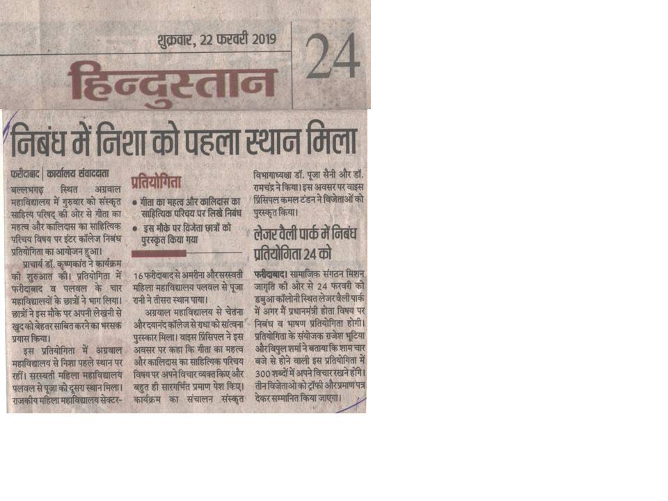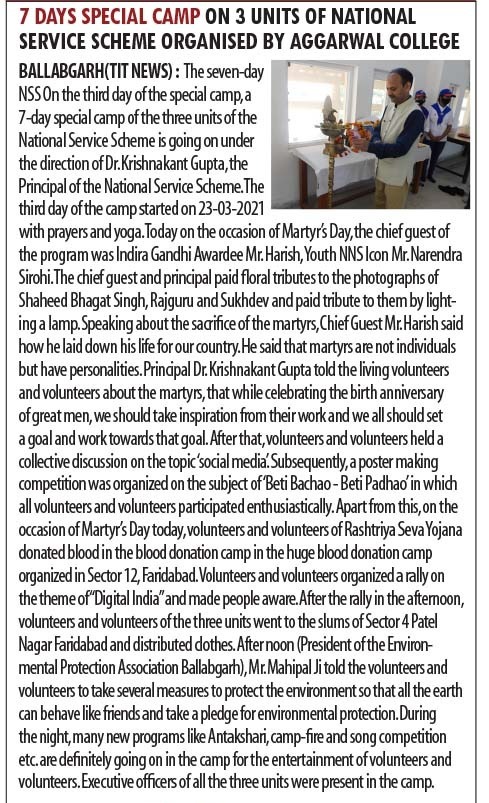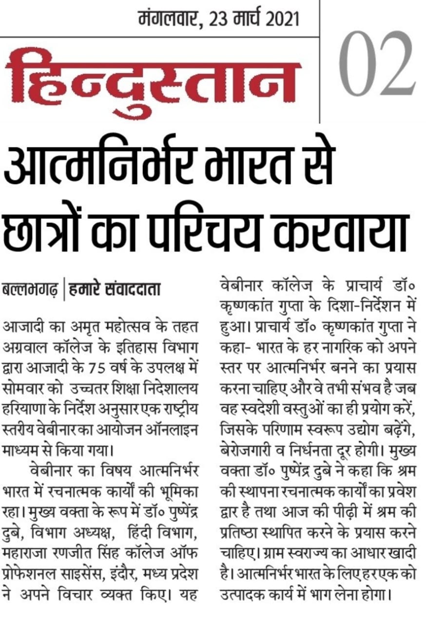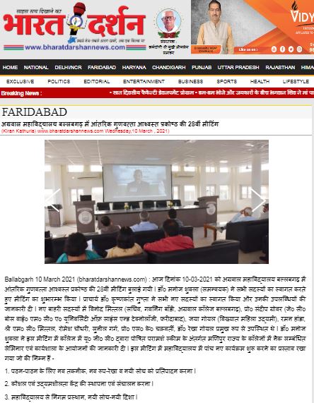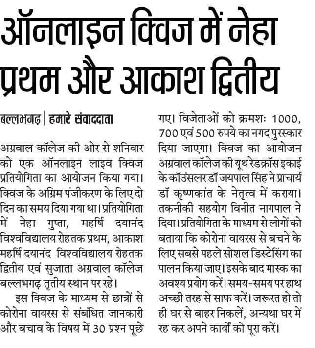 Content owned and managed by : The Principal, Aggarwal College, Ballabgarh - 121004, Distt. Faridabad (Haryana) India