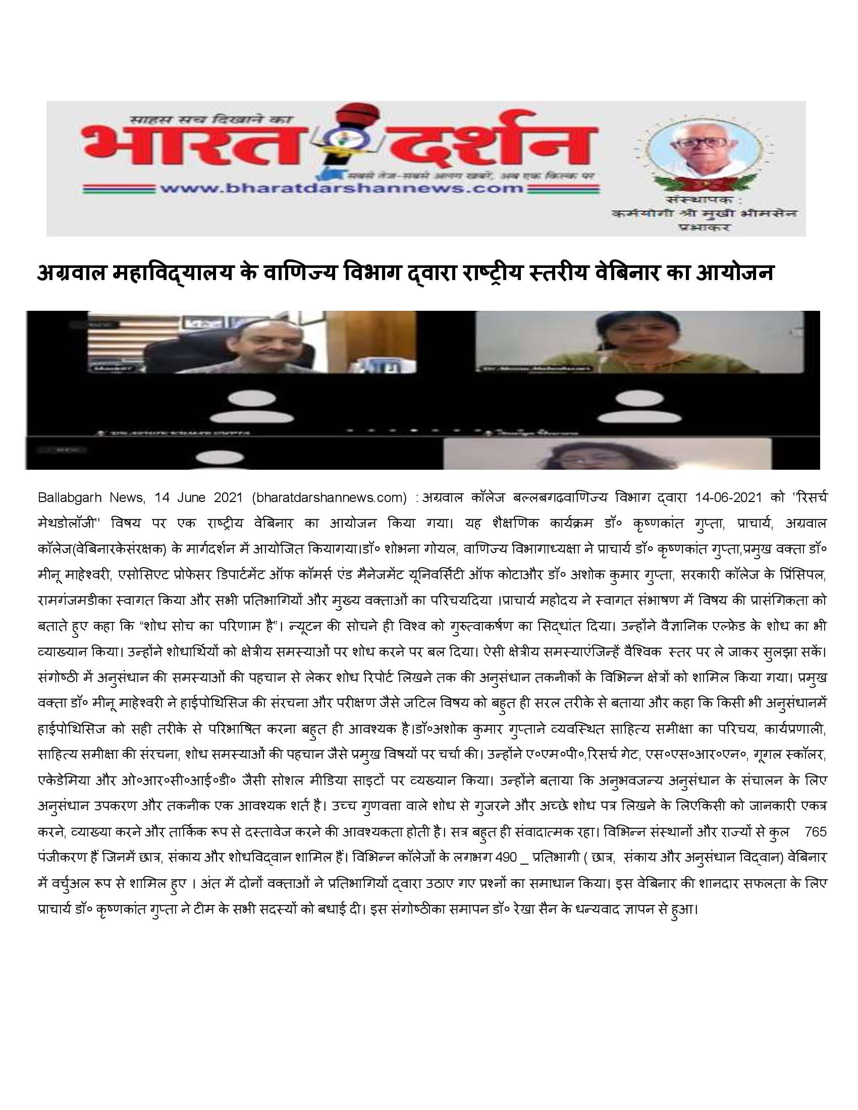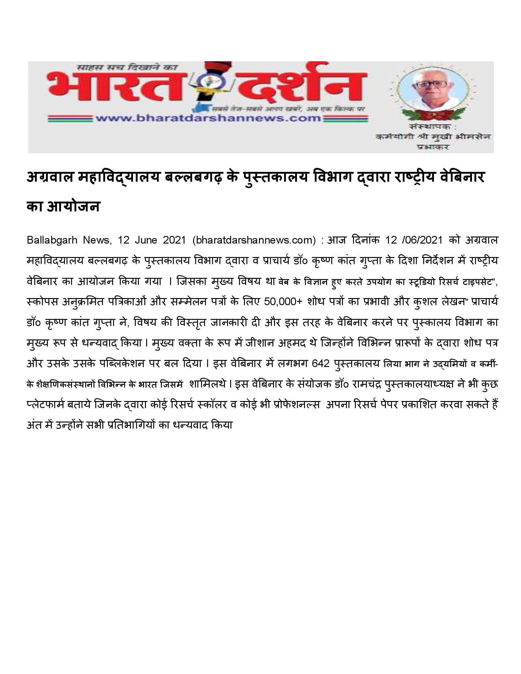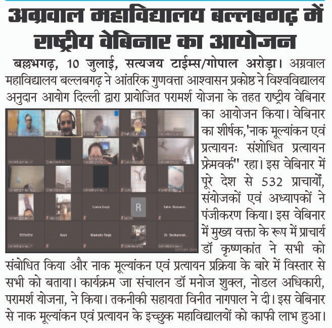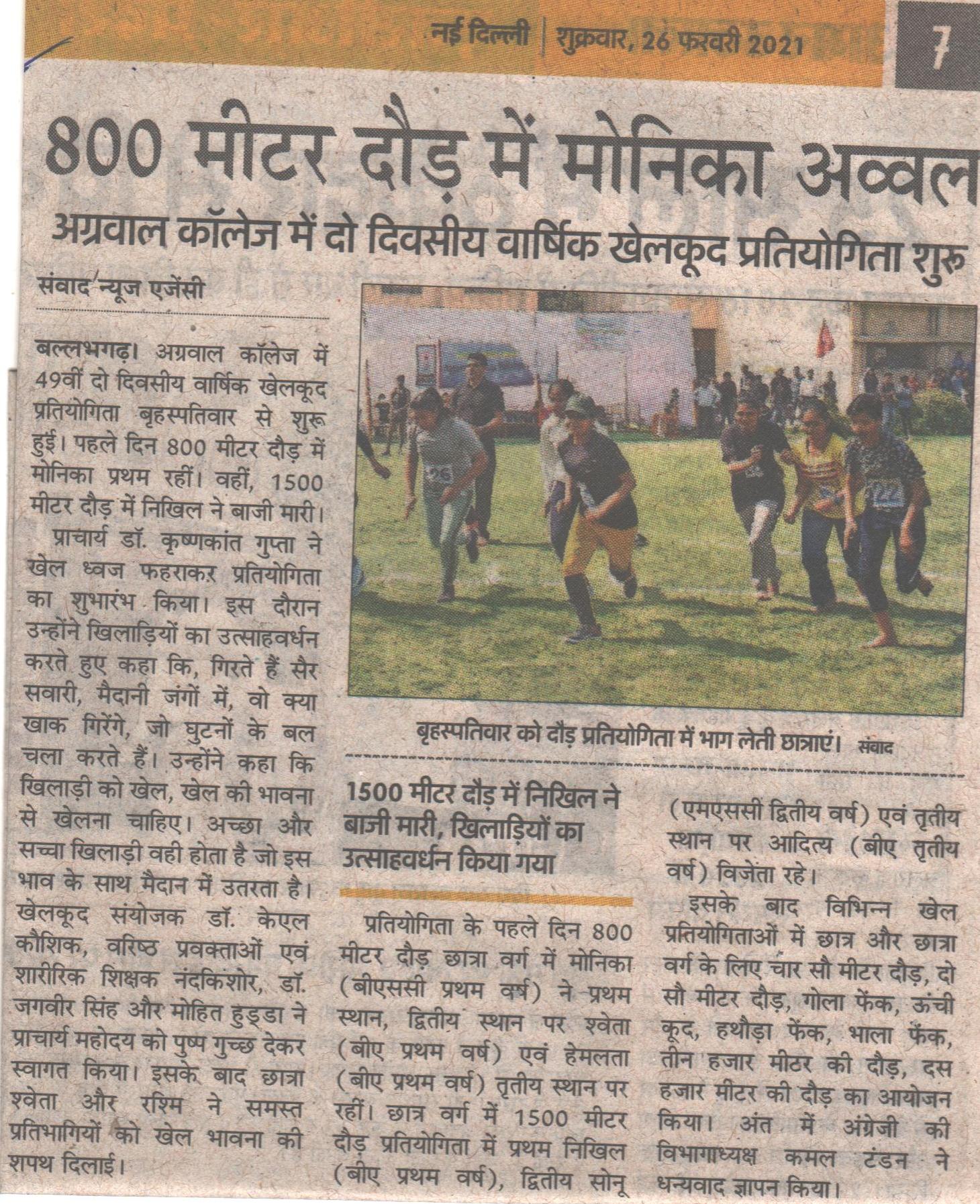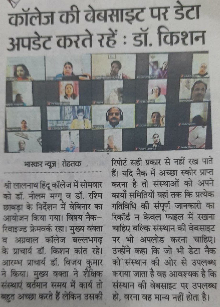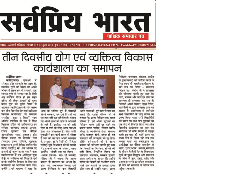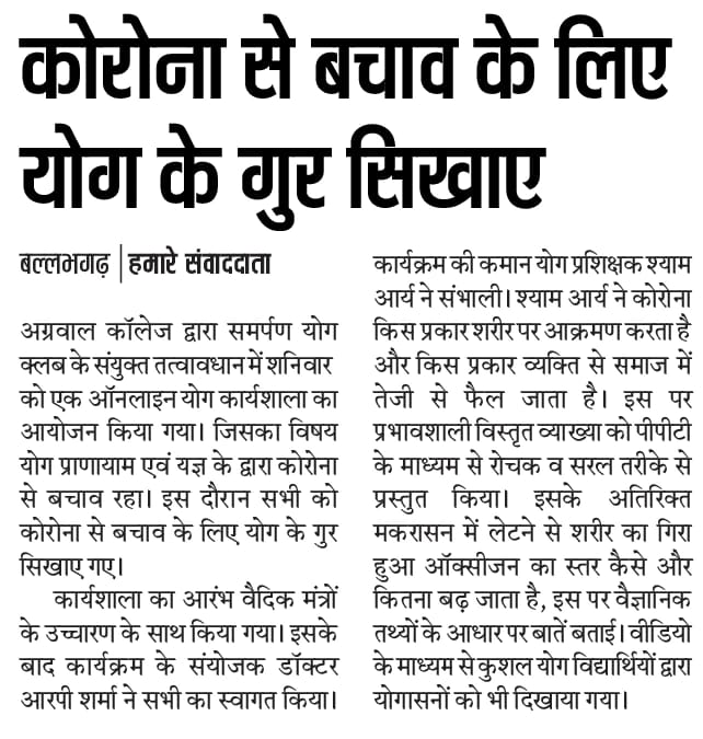 Content owned and managed by : The Principal, Aggarwal College, Ballabgarh - 121004, Distt. Faridabad (Haryana) India